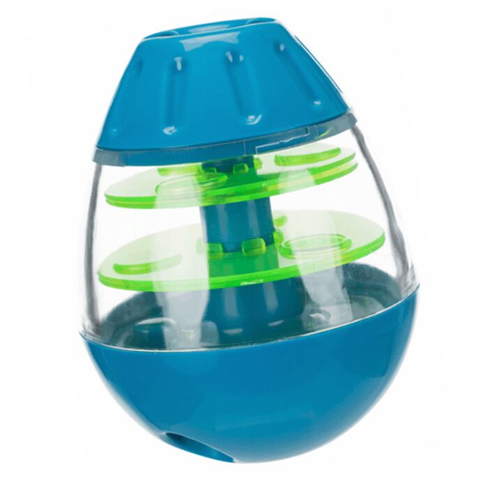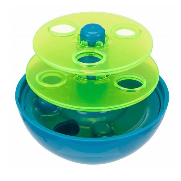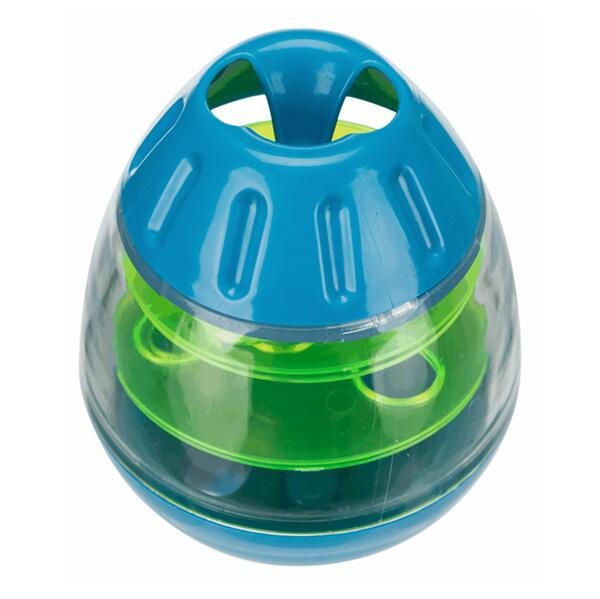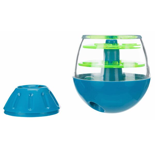 Trixie Roly Poly Snackæg er produceret i plastik, og indvendigt findes 4 udtagelige plader, med forskudte åbninger, som du selv kan regulere for at bestemme, hvor mange godbidder der skal komme ud. Ved at justere på de 4 plader bestemmer du også selv sværhedsgraden på legen.