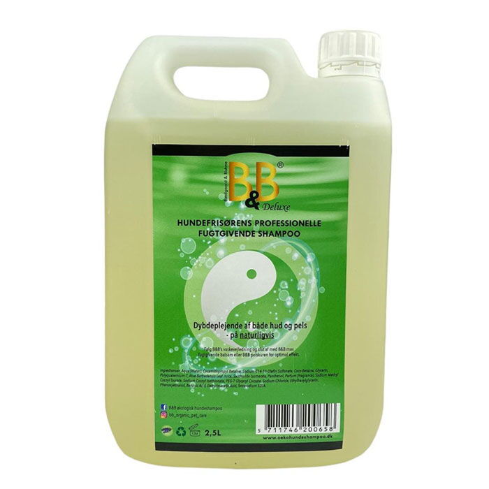 Shampooen fra B&B er dybderensende, og den vasker både hud og pelsen helt ren, mens den tilfører fugt fra de tilsatte lækre veganske ingredienser som bl.a. Aloe Vera og duftfri kokosolieextrakt. Disse ingredienser fjerner aktivt døde hudceller, og giver derfor optimal vækst for en smuk, sund og glansfyldt pels.