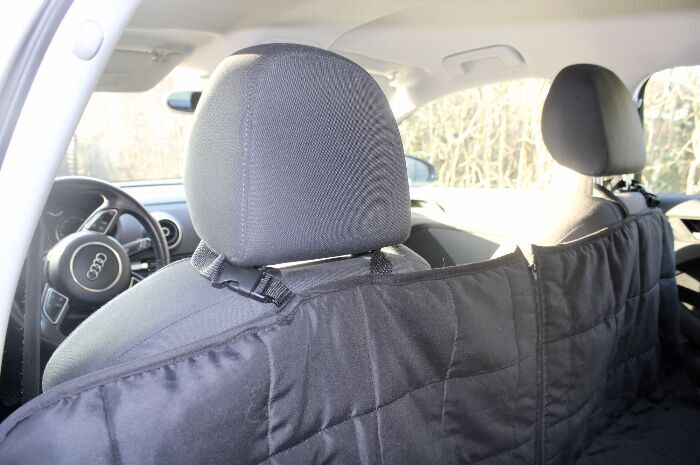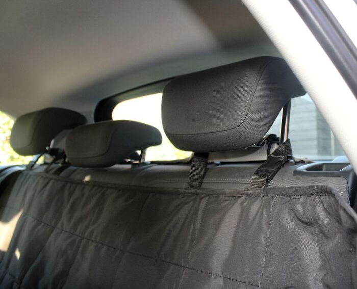 Kraftig beskyttelsesmåtte til montering på bagsædet af din bil - passer i alle modeller og beskytter alle sæderne.