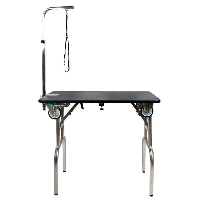 En hel unik type trimmebord til den seriøse groomer og udstiller. Som den eneste model i vores sortiment af trimmeborde kan dette bord bruges som transportløsning for eksempel når du er på vej ind til hundeudstillingen. Bordet kan let klappes sammen og nu benyttes som trækvogn, hvorpå du kan fragte dit hundebur med dine hunde samt de øvrige remedier, der skal sikre dig, og dine hunde, en førsteplads på weekendens udstilling.