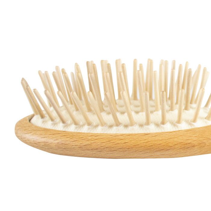 En skånsom groomingbørste af bøgetræ med træpigge