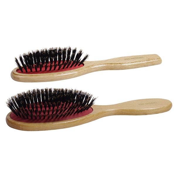 En 100% ren svinehårsbørste, der hindrer statisk elektricitet. Anvendes til at blanke pelsen på korthårsracer, og til nænsomt at vænne hvalpen til soignering. Børsten kan også anvendes på langhårsracer, som afsluttende pelspleje, for at fjerne de helt små filtrer samt løse hår. Børsten fås i to størrelser.