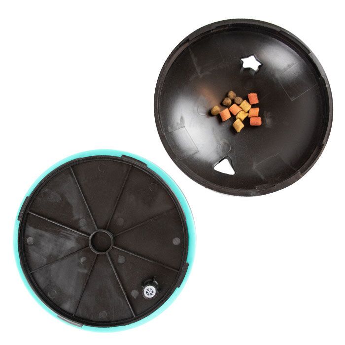 Squeaky Treat Ball er et aktiveringslegetøj hvor hunden skal arbejde på at få foderet ud. Skru toppen af legetøjet og fyld det op med din hunds foder eller godbidder. Herefter er det op til hunden at vippe Squeaky Treat Ball fra side til side, for at få maden ud gennem de 2 huller.