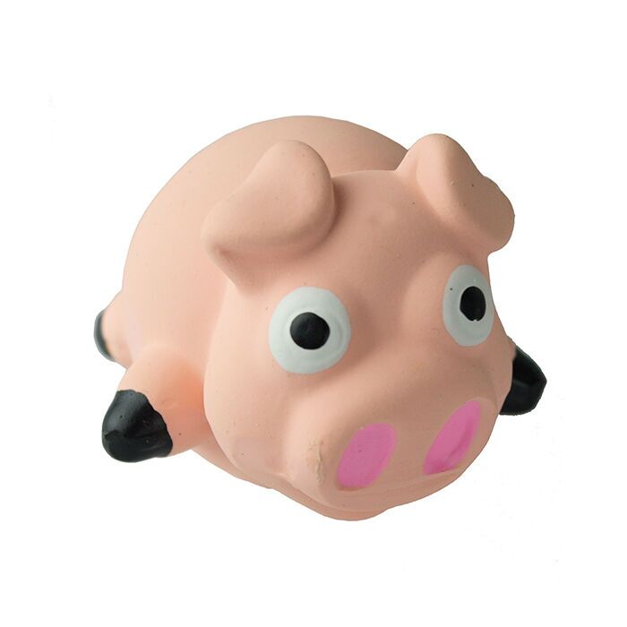 En sjov og skøn lille gris med rund mave og stor tryne fremstillet i blød latex.