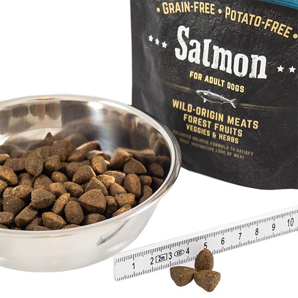 Carnilove Samlon hundefoderet består af 70% kød af vild oprindelse og 30% vilde bær, grøntsager og urter.