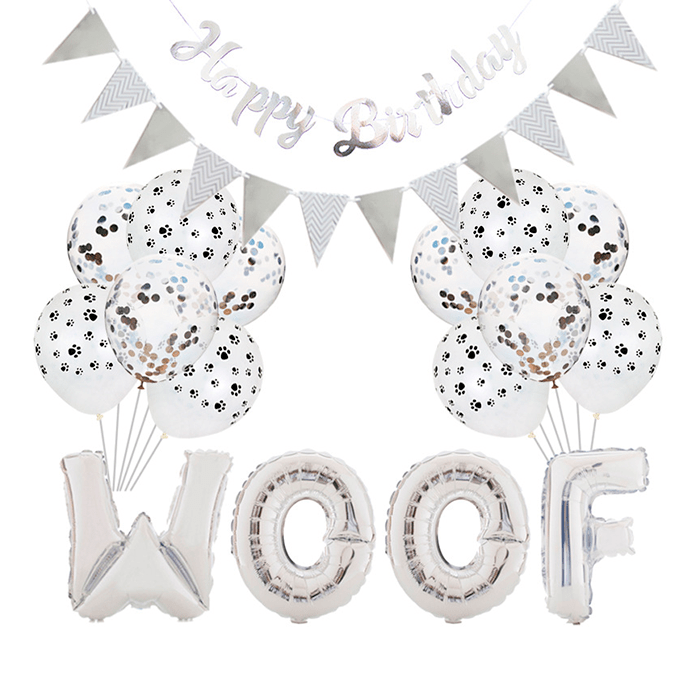 Ollipet Woof Party Pakke er det perfekte festpynt til hundefødselsdagen, eller andre former for festligheder. I pakken får du et komplet sæt af diverse balloner og bannere. En stor del af ballonerne består af bogstaver som tilsammen udgør ordret: WOOF. Dette sæt egner sig derfor særligt til hundeelskeren, som gerne vil gøre sin hunds fødselsdag til en stor fest!