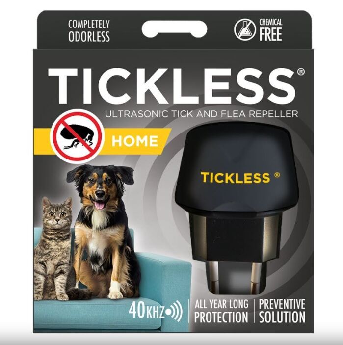Tickless Home Pet bruges indefor i dit hjem for at afskrække lopper og flåter. Den fungerer ved hjælp af ultralydsimpulser, der ligger i et frekvensområde, hvor der opstår svingninger hos skadelige parasitter som lopper og flåter.