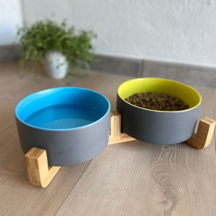 Ollipet Danny & Bobby keramikskåle i bambusholder giver din den perfekte spisestation