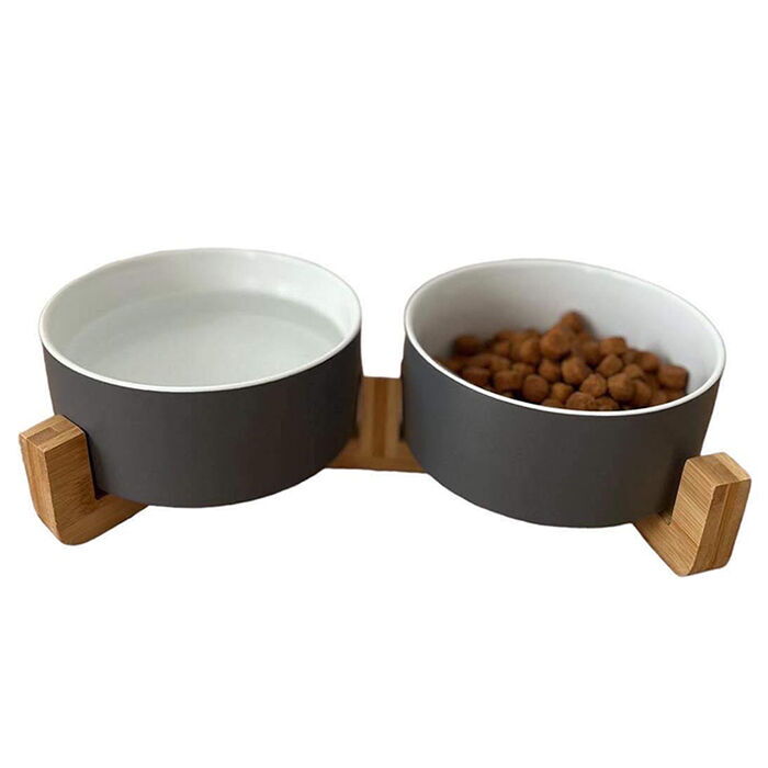 Ollipet Freddy keramikskåle i bambusholder giver din hund den perfekte spiseplads