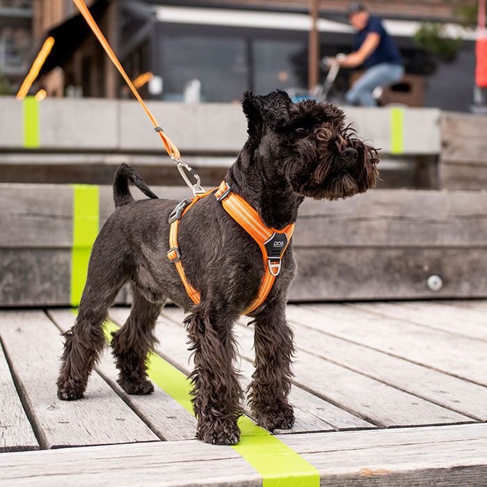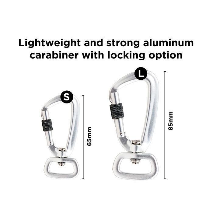 - Med solid karabinhage til fastgørelse i hundens sele eller halsbånd.