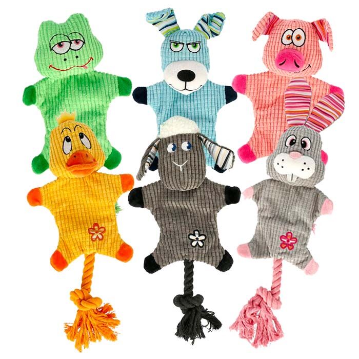 Disse søde små dyrebamser er et perfekt stykke legetøj til enhver legesyg hund, og ejer! Dyrene er produceret i fine afdæmpede farver, i et blødt bomuldslignende materiale, og måler ca. 35 cm i længde, og ca. 18 cm på det bredeste punkt. Dyrene fås i 7 fine varianter.