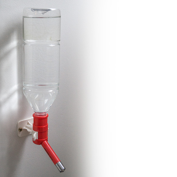 Smart drikketud der let monteres på væg, drikkestativ eller i hundeburet. Flaske på 0.5, 0.7L eller 1L bestilles separat.