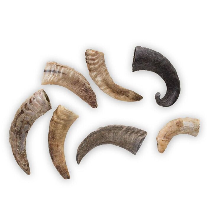 OBS: Da lammehornene er et naturligt produkt, kan størrelserne variere en del. Nogen horn kommer med knoglemarv indeni og andre uden, dette har selvfølgelig også betydning for vægten.