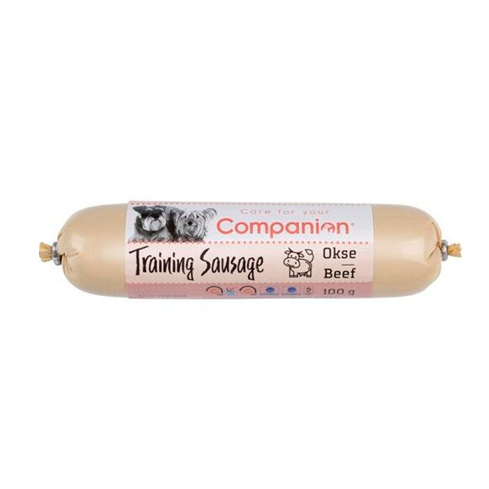 Companion Training Sausage er små 100gr. pølser beriget med lækkert kød. Rullen passer lige ned i lommen når du er på farten, og er nemme at have med. Skær dem ud i lige nøjagtig den størrelse du ønsker til din hund.