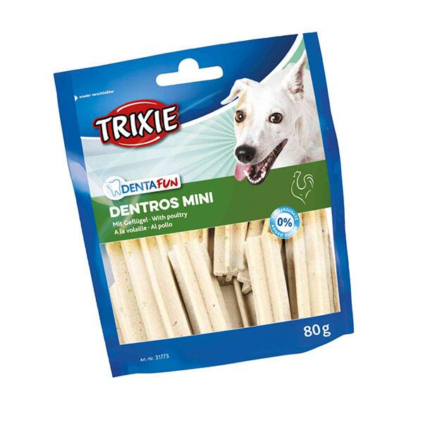 Tandrensende bidder, der måler ca. 4,5 cm i længden. Dentros-stykkerne har en lækker smag af fjerkræ, og renser din hunds bisser mens den tygger. Desuden bliver hundens kæbemuskulatur trænet, da bidder har en god fasthed.