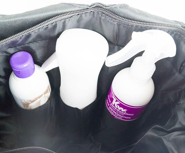 Fyld tasken med kamme, børster og andre pelspleje produkter og du har samling på din hunds groomingudstyr.