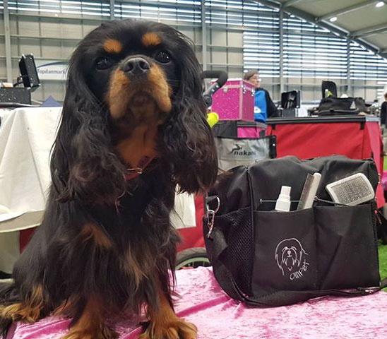 Tag tasken over armen eller skulderen når du skal på udstilling. Nu kan du være sikker på, at have alle dine småting med. Tasken har flere forskellige rum, så der er også plads til ringnummer, udstillingsline m.m.