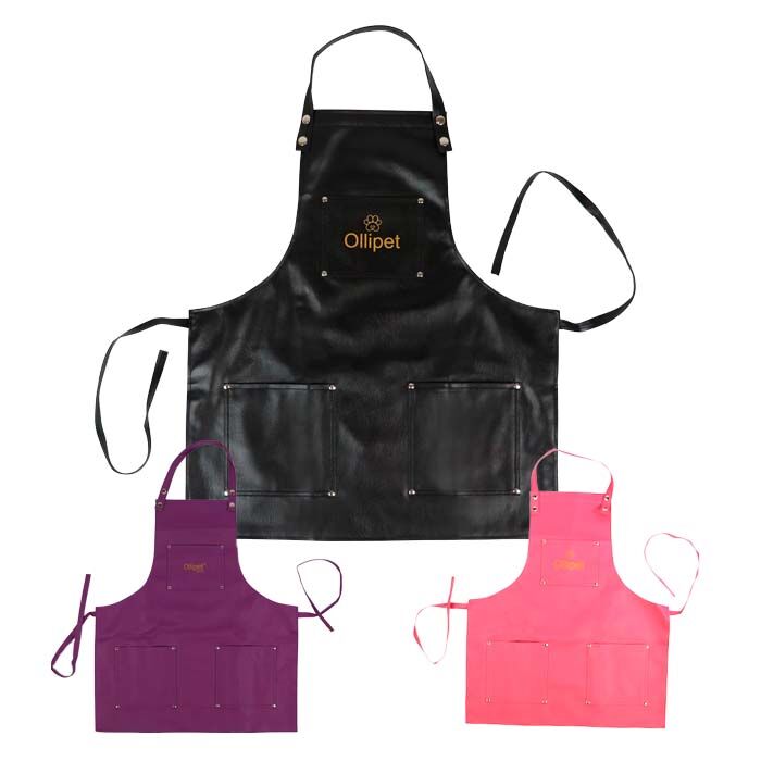 Groomingforklædet er fremstillet i vandtæt og vaskbar læderimiteret materiale.