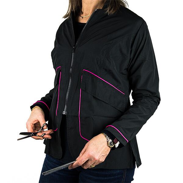 Groomingjakken er sort med pink bånd ved de 2 forlommer, der giver et flot design.