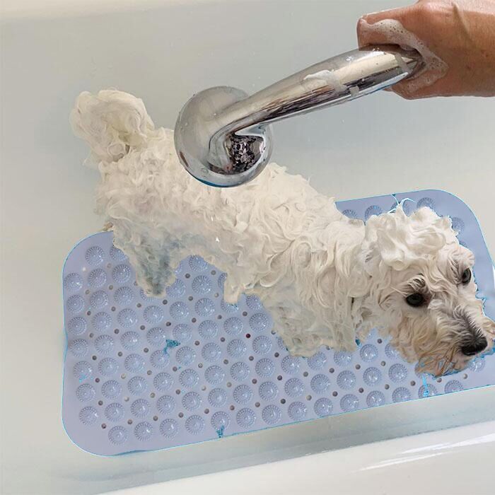 Flot, skridsikker bademåtte i flotte farvet gummi - så kan vovsen stå fast i badekarret