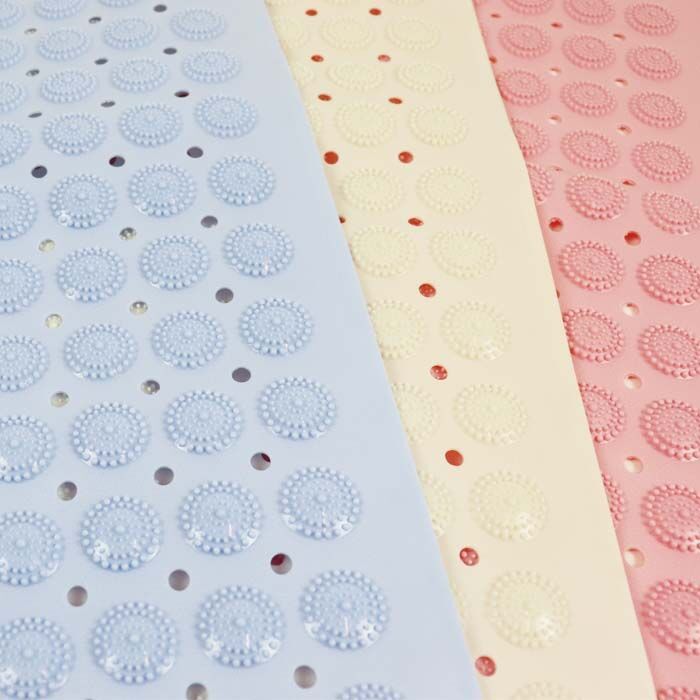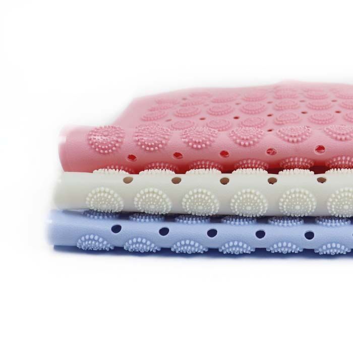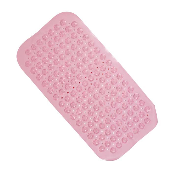 Bademåtten har sugekopper under og et præget mønster på oversiden, som gør måtten særdeles skridsikker.