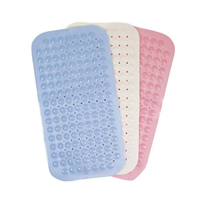 Bademåtten har sugekopper under og et præget mønster på oversiden, som gør måtten særdeles skridsikker. Kan både bruges i brusekabine, badekar eller en stor vask.