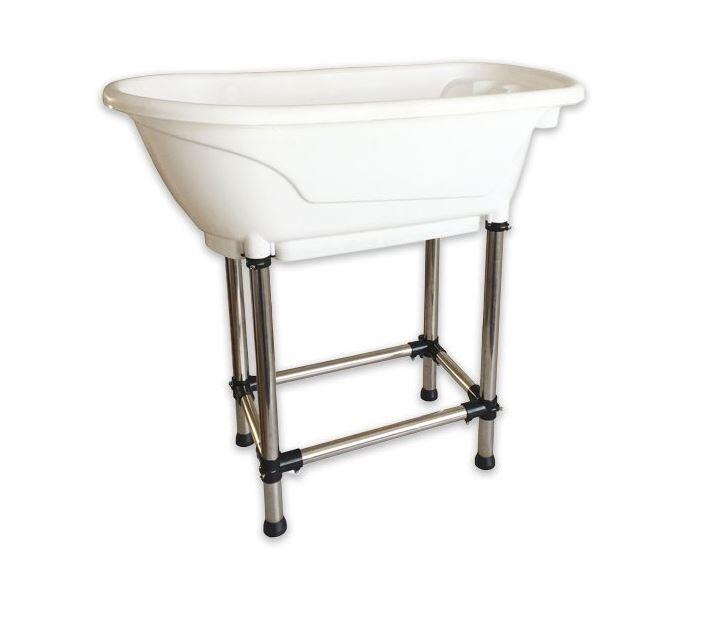 Et utroligt anvendeligt og ikke mindst prisbilligt hundebadekar monteret på solid stålramme, der giver en ergonomisk korrekt arbejdshøjde. Badekarret kan benyttes udendørs såvel som indendørs og er fremstillet i kraftigt og slagfast, sprøjtestøbt PVC. Det er forsynet med en praktisk afløbsslange, der kan trækkes ned til gulvafløb på for eksempel toilettet eller bryggerset.