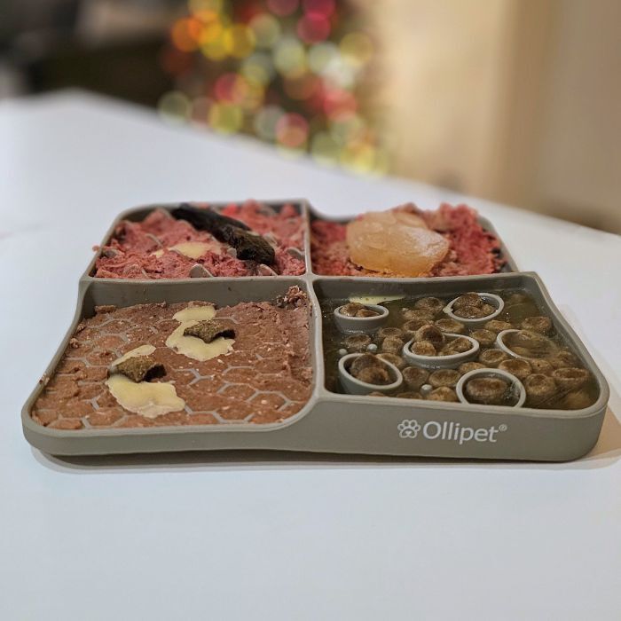 Med Ollipet Smagssymfoni Slikkepladen får din firbenede ven en helt ny madoplevelse. Denne innovative slikkeplade er skabt med at skabe en sjovere og mere underholdene og udfordrende madoplevelse for hunden, der samtidig understøtter en sund spiseadfærd. Med fire forskellige rum giver slikkepladen mulighed for at servere vådfoder, tørfoder eller godbidder, hvilket gør den til en alsidig løsning for alle hunde.