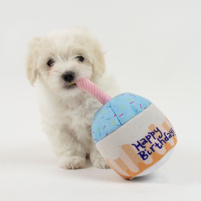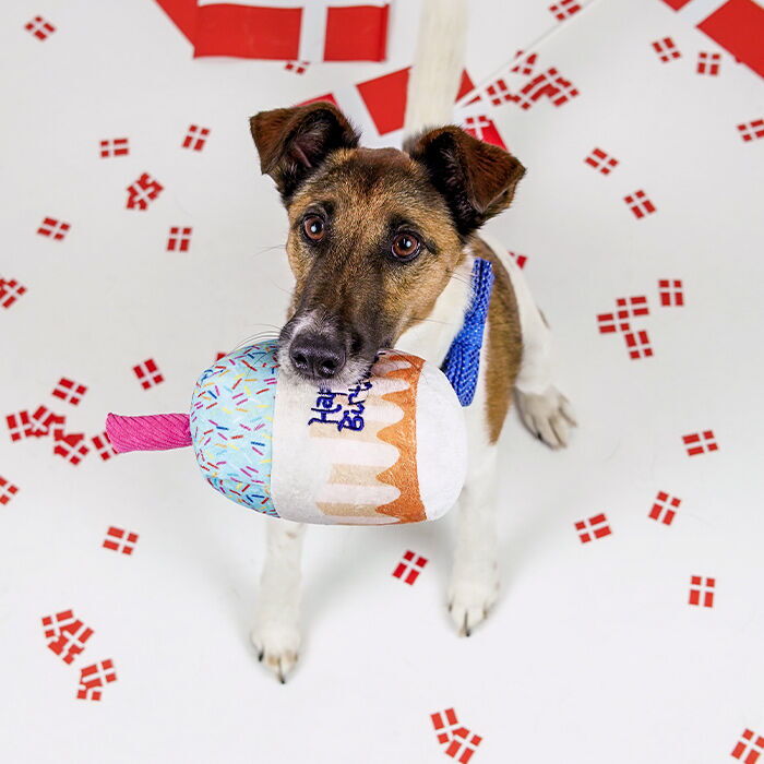 Udover at tilføje en sød lille detalje til den hyggelige dag, så er fødselsdagskagen i plys også et sjovt stykke legetøj, som din hund vil elske at lege med.