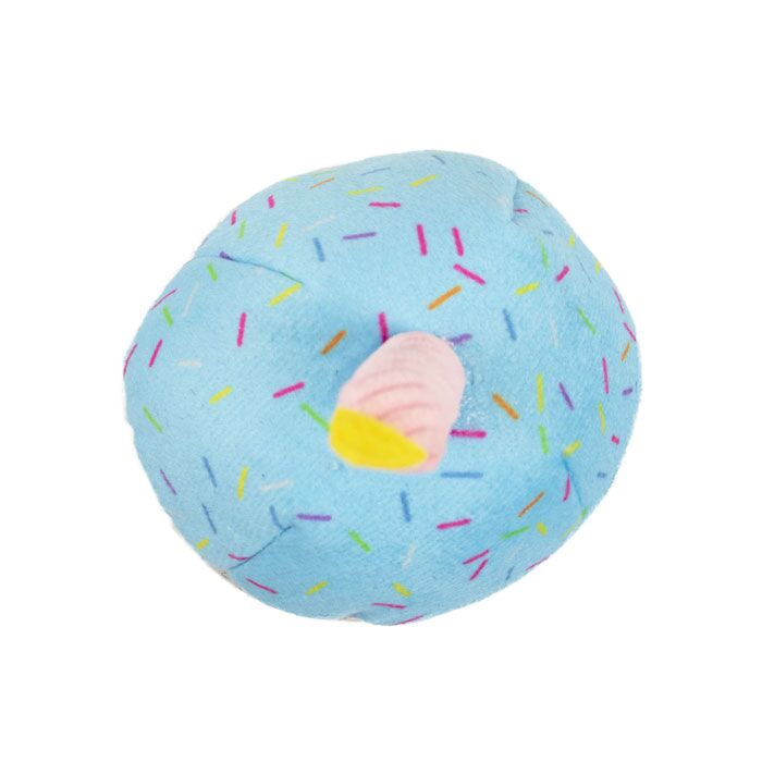 Der befinder der sig en lille squeaker inde i fødselsdagskagen i plys, som tilføjer en sjov overraskelse, når hunden leger med legetøjet.