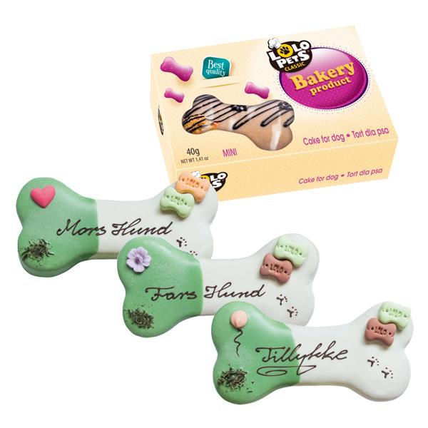 Har du en mindre hund og du er bange for at 250g. bliver en lidt for stor mundfuld, så kan vi tilbyde en hundekage som kun vejer 40g.