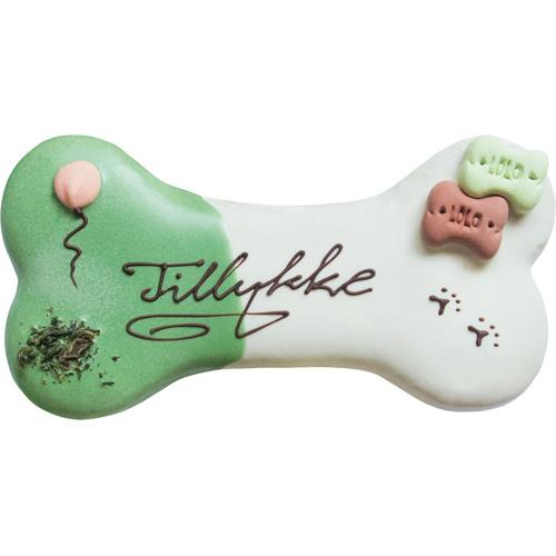 Med det flotte kødbens design, enkle farver og flot skråskrift i sort vil denne kage være perfekt til fødselsdagen, Instagram og en sød gave verdens bedste hund. Kagen er fremstillet i lækre og velsmagende produkter som vil få din hund til at savle og tigge efter mere.
