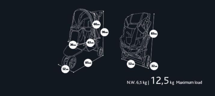 • Sammenfoldet størrelse cirka 52 x 32 x 83 centimeter