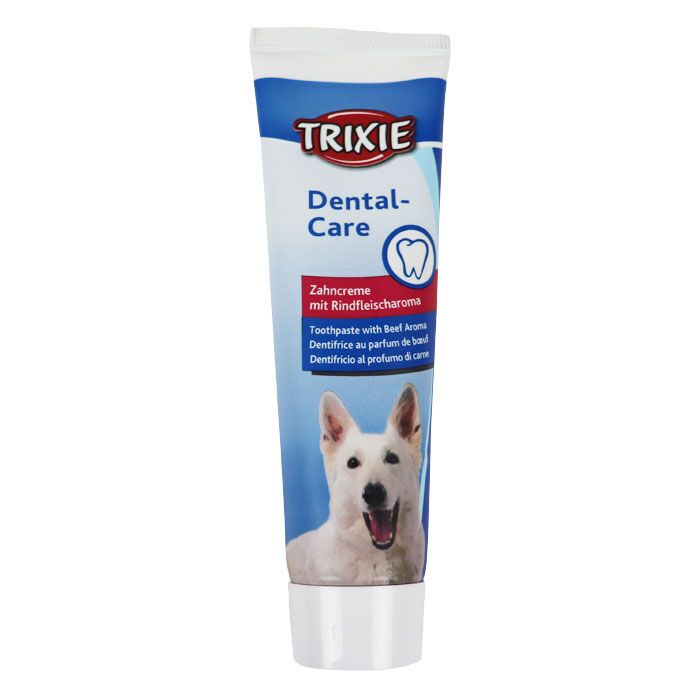 Selvom man er hund, skal mundhygiejnen være i orden. Så hvorfor ikke holde din hunds tænder rene med denne tandpasta fra Trixie, som tilmed har en smag af oksekød. Dét er da lækkert - i hvert fald for hunden!