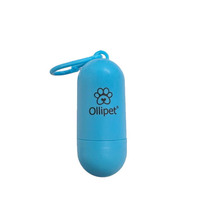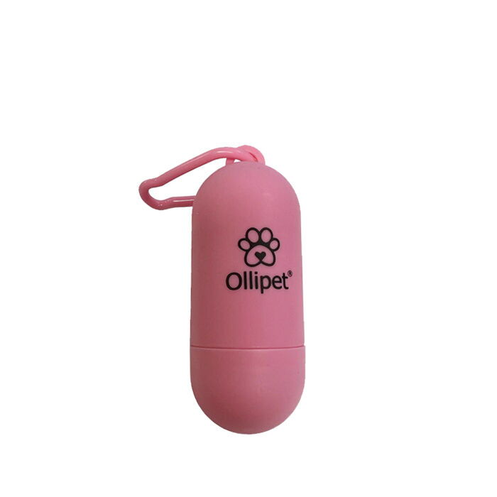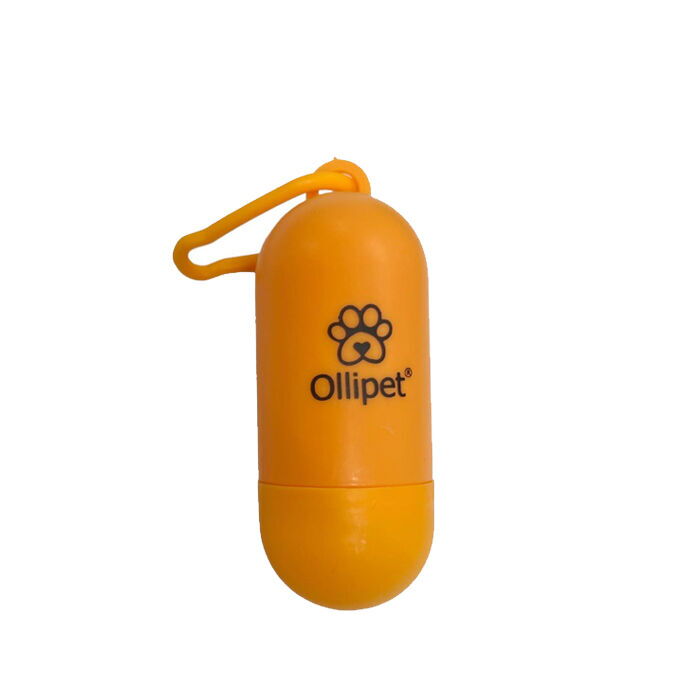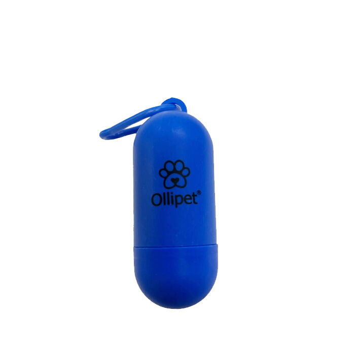 Ollipet pølleposeholderen er fremstillet i et plastmateriale og har en oval-lignende form. Når den skal fyldes op med nye hundeposer, kan du skrue bunden af og komme en ny rulle i. På siden af holderen er der et hul, hvor du blot kan tage fat i rullen, og rive en pose af.