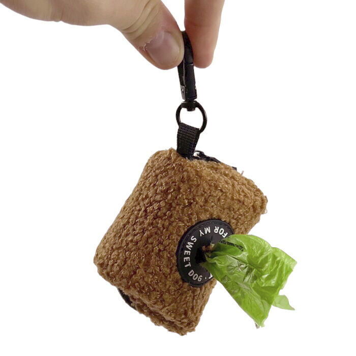 Tasken har en sort, mat karabinhage, som gør det nemt at hægte den fast på linen, dine bukser, din jakke eller lignende. På den måde har du altid en Høm-Høm pose lige ved hånden, når du er ude at gå med din firebenede ven.
