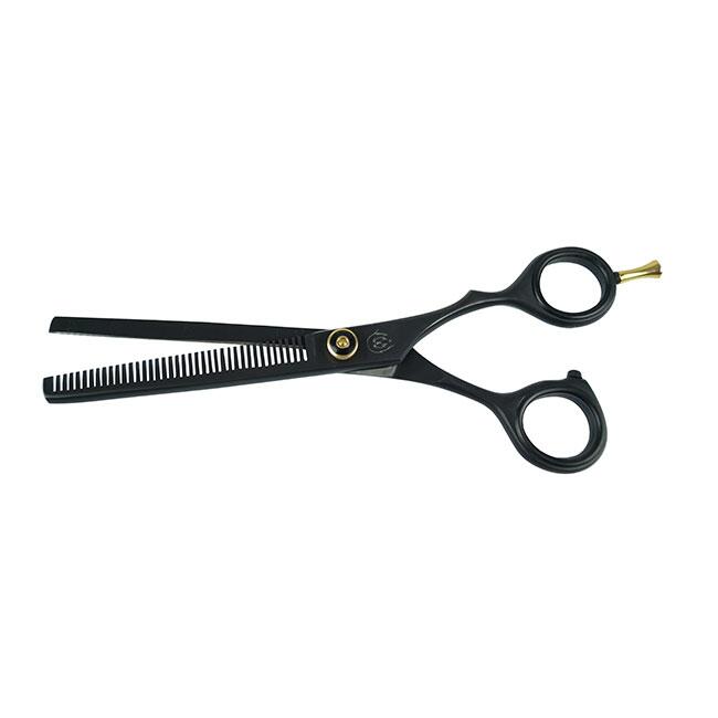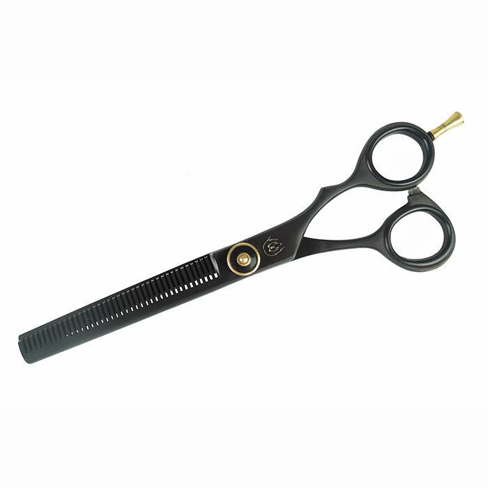 Elegant og gennemført effilersaks sortelokseret stål med guld finish, til dig der ønsker lidt længde på saksen. Saksen er til professionelle bruger, men også til dig der lægger vægt på kvalitet og gode klippeegenskaber.