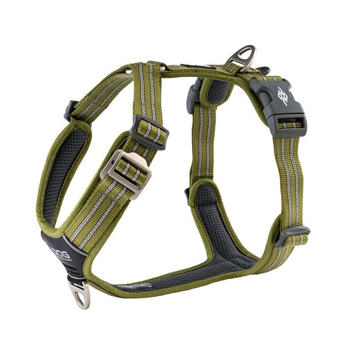 - Step in-sele: Kan åbnes i siden, så den ikke skal trækkes ned over hundes hoved.