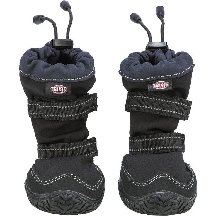 Disse sko beskytter hundens poter mod sne, is og salt, der ellers har tendens til at sætte sig fast mellem hundens trædepuder.