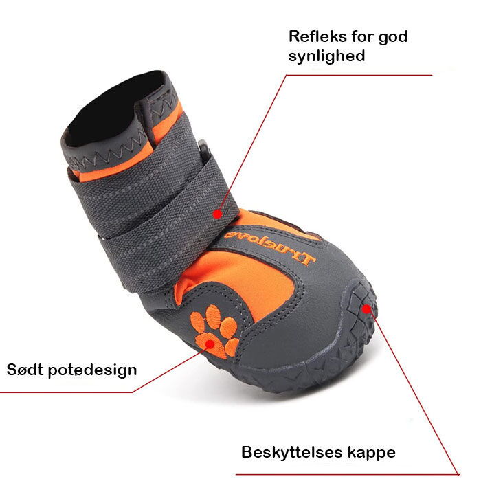 Hundeskoen har desuden refleksdetaljer, som sikrer, at hunden kan ses i mørke.