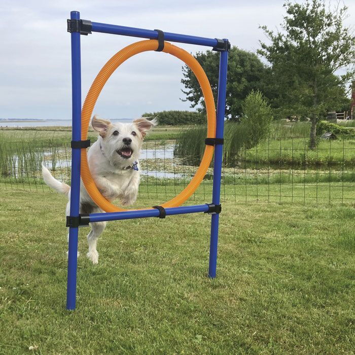 Du kan regulere ringens højde og derfor ændre sværhedsgraden. Denne agility ring er nem at sætte sammen og på samme måde pakke sammen igen. Agilitytræning er en fantastisk aktivitet, som giver dig og din hund et særligt bånd, og træner hundens fysik og intelligens.
