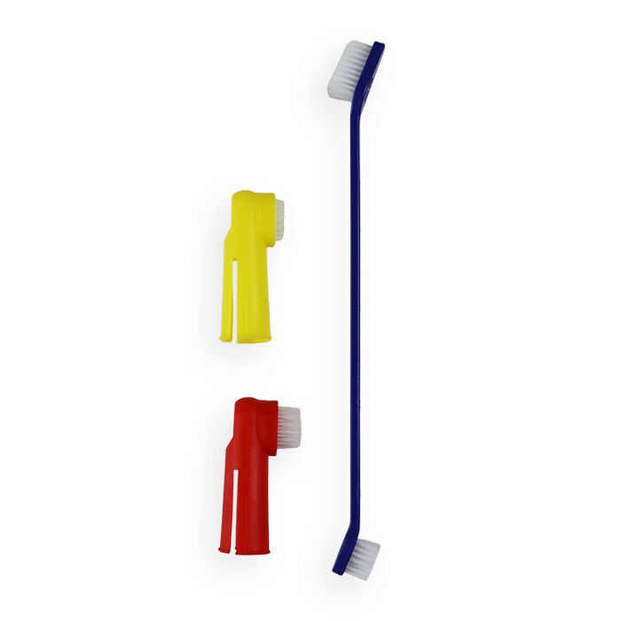 Med 2i1 tandbørstesæt får du en god startpakke. Vi anbefaler at du anvender en god hundetandpasta, og børster tænder dagligt, for det bedste resultat.