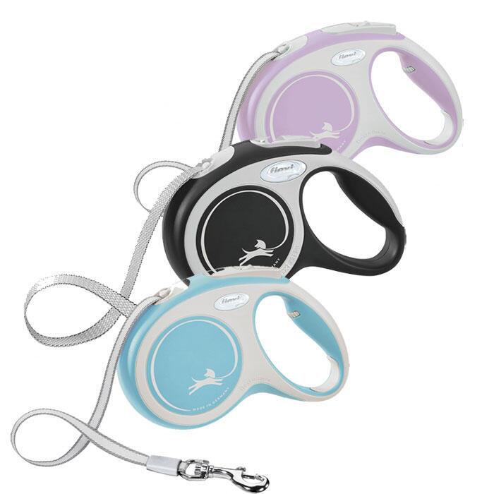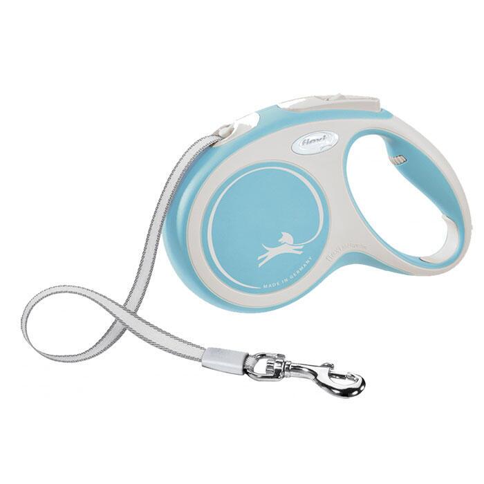 Flexi New COMFORT med bånd leveres i 3 forskellige farver - Leveres i størrelse small med 5 m lang line