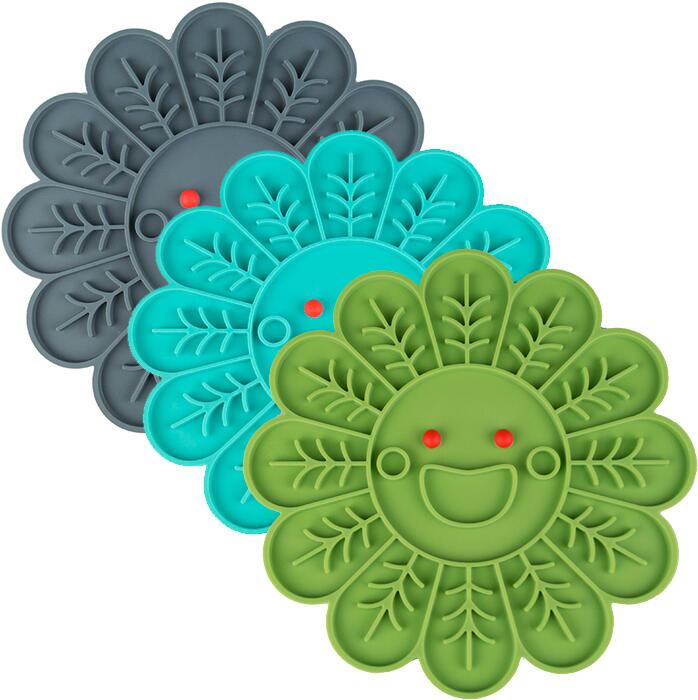 Denne slikkemåtte er en super god måde at fodre og aktivere din hund på. Dekorer den med din hunds yndlings vådfoder og lad din hund arbejde på at slikke den ren. Den glade slikkemåtte er udformet som en blomst med fordybninger, som gør at hundemad nemt kan hænge fast.