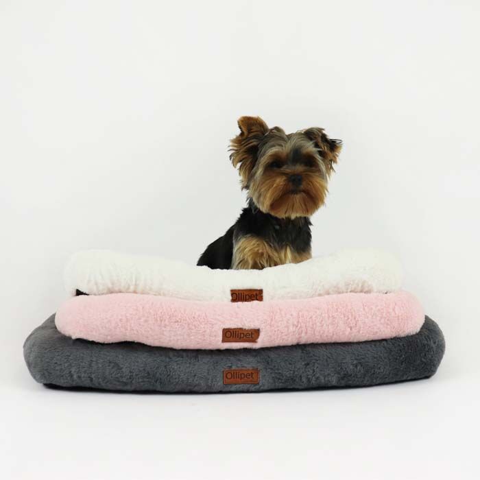 Ollipet Luksus Madras er formet som en rektangel med en høj tyk kant, som hunden kan hvile sit hoved på. Det bløde fleece er overtrukket på hele madrassen, så hunden kan ligge blødt og godt uanset, hvilken position den ligger i.