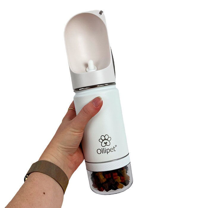 Ollipet Stainless Steel 3i1 Drikkeflaske er skabt med omtanke. Den kombinerer tre essentielle funktioner i ét elegant og kompakt design. Den er ikke kun en drikkeflaske, men også en madskål og en godbidsholder - alt i én!