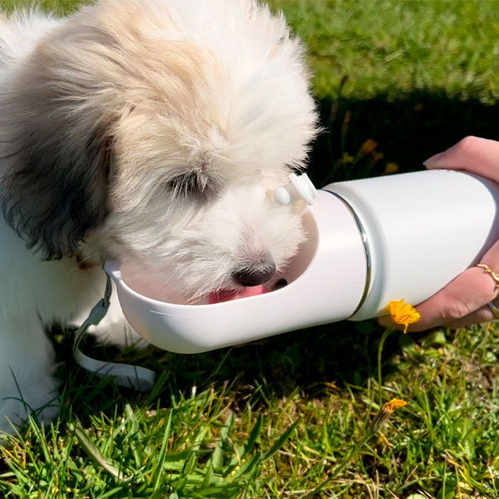 Uanset om I er på en lang vandretur, på udstilling eller bare en tur rundt om blokken, er denne drikkeflaske en uundværlig følgesvend! Den er designet til at imødekomme de behov, din hund kan have undervejs.