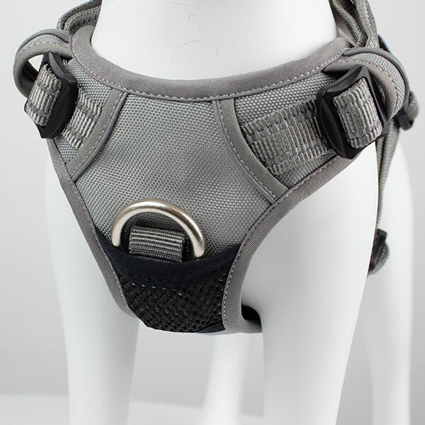 På selen finder du to kraftige aluminium D-ringe. Den ene sidder på ryggen, hvor du kan fastgøre linen. Den anden sidder på bryststykket, og forvandler selen til en antitræk hundesele til hunde der trækker på gåturen.