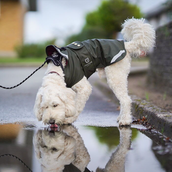 Nu kan du beskytte din hund mod de tunge regndråber, og have en nogenlunde tør hund med hjem efter en regnfuld gåtur.