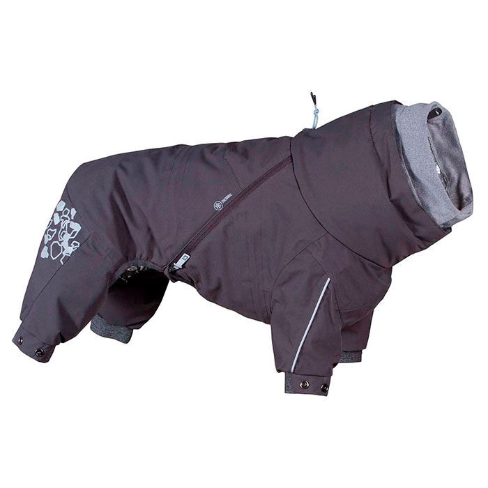 Dækkenet er designet med speciel folie som reflekterer hundens kropsvarme tilbage mod kroppen, hvilket aktiverer blodcirkulationen i kroppen samt benene. Overfladematerialet er blødt og 100% vind- og vandtæt. Heldragten har en høj krave som beskytter hundens hals mod vind og vejr, og kan trækkes helt op over ørene.